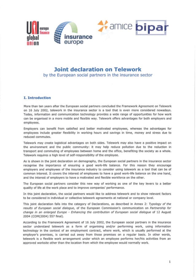 Accord de branche européen sur le télétravail dans le secteur des assurances